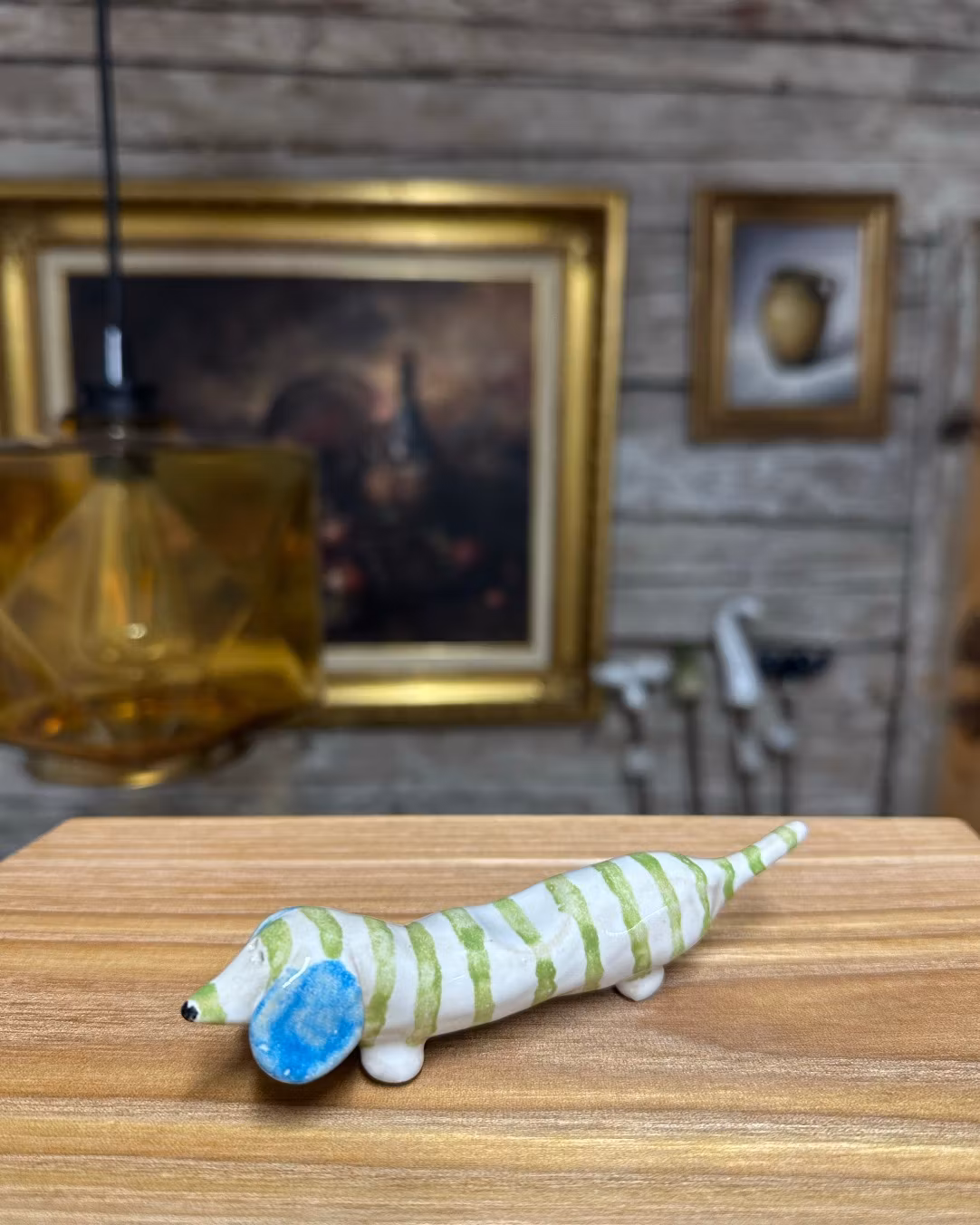 Hem › Produkter › Smörtax Smörtax Produkten är tyvärr slut i lager. ???? Varje tax är handgjord och unik med egen personlighet och färgsättning. Storlek: ca 11cm lång.Färg: Vit med gröna ränder och ljusblå öron