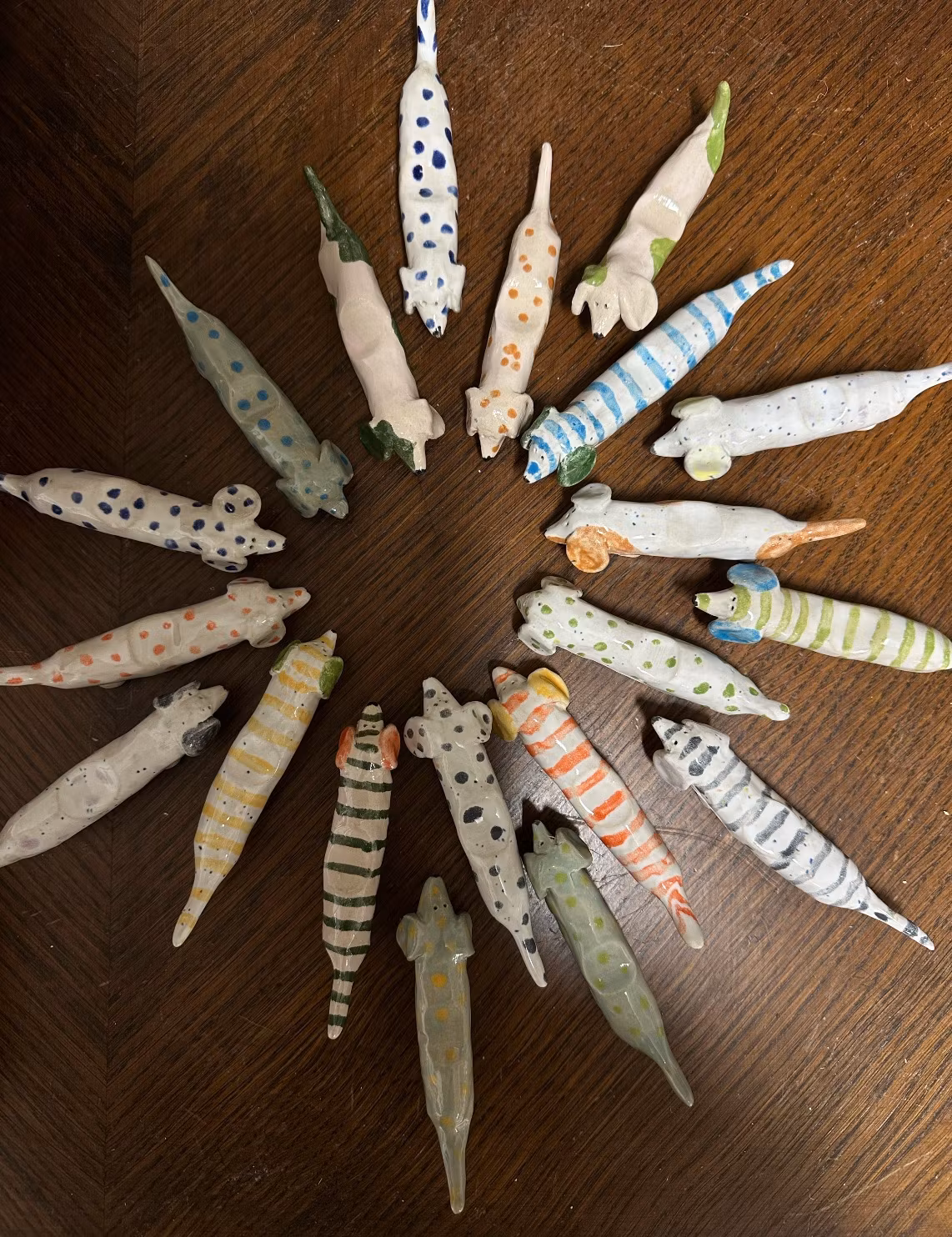 Hem › Produkter › Smörtax Smörtax Produkten är tyvärr slut i lager. ???? Varje tax är handgjord och unik med egen personlighet och färgsättning. Storlek: ca 11cm lång.Färg: Grå och ljusblå prickar